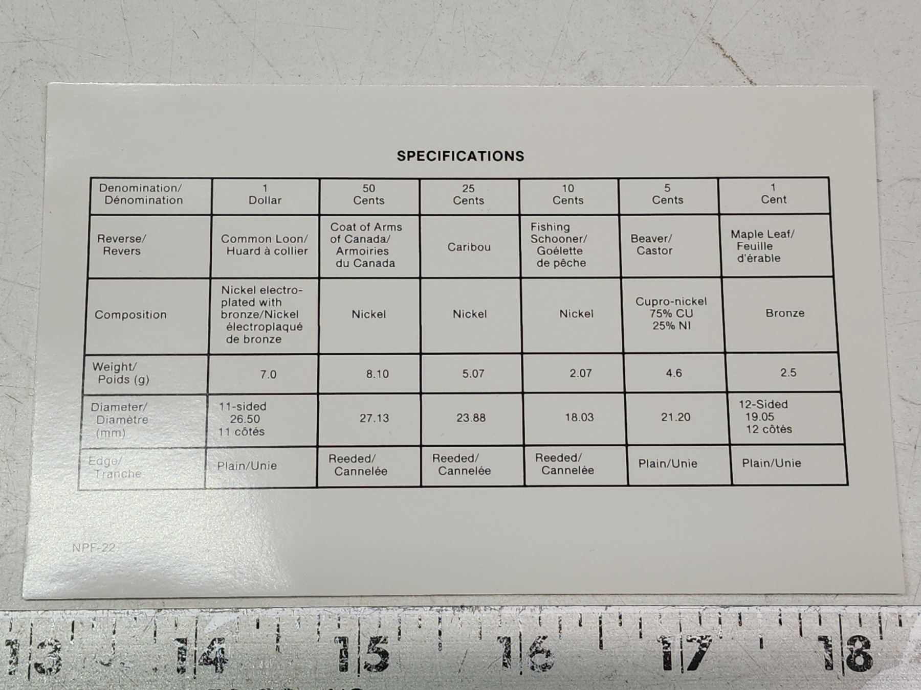 1989 Specimen Set. 6-coin set housed in its original Royal Canadian Mint case of issue.