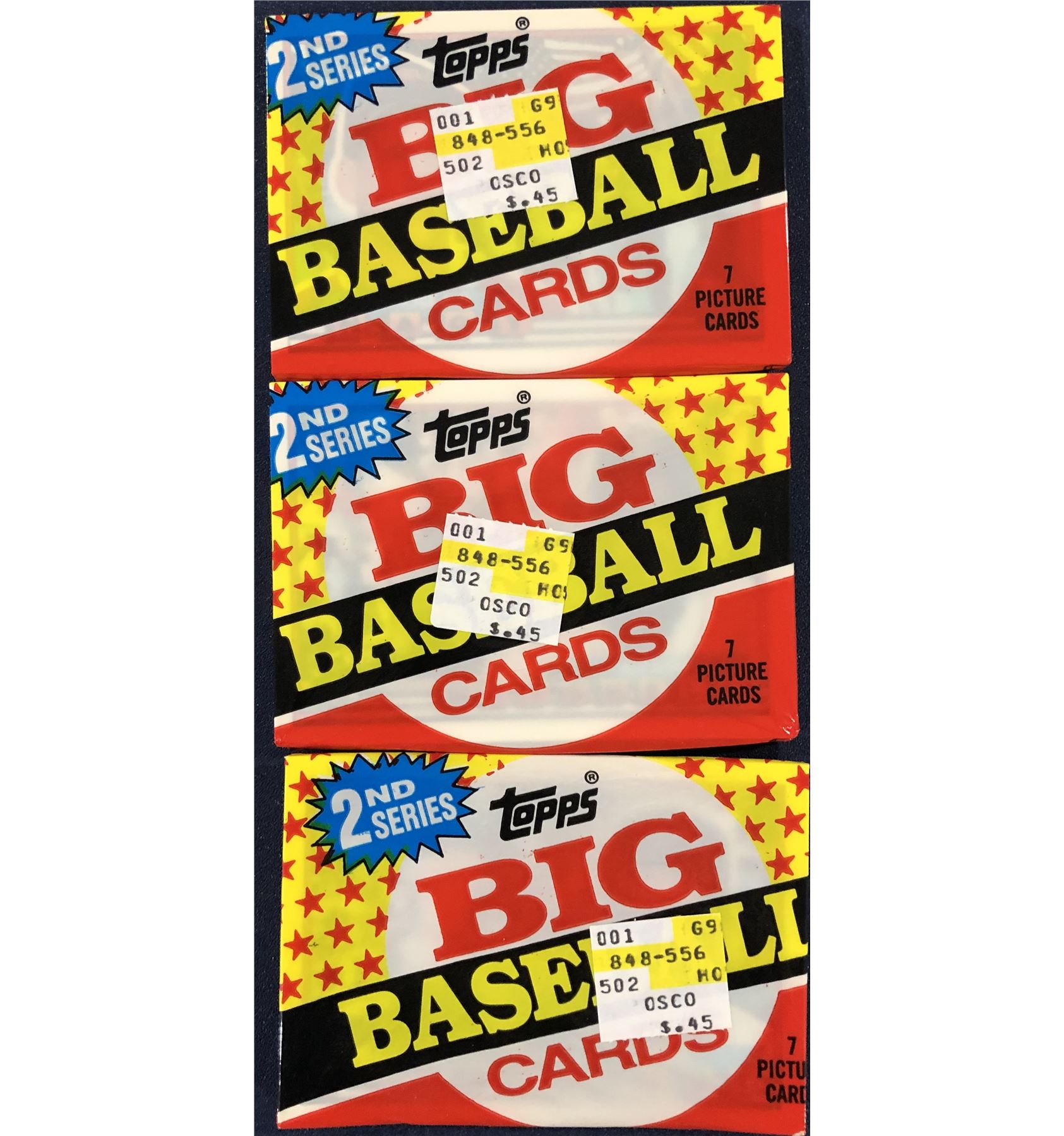 Three sealed cello packs, each containing 7 cards baseball, MLB