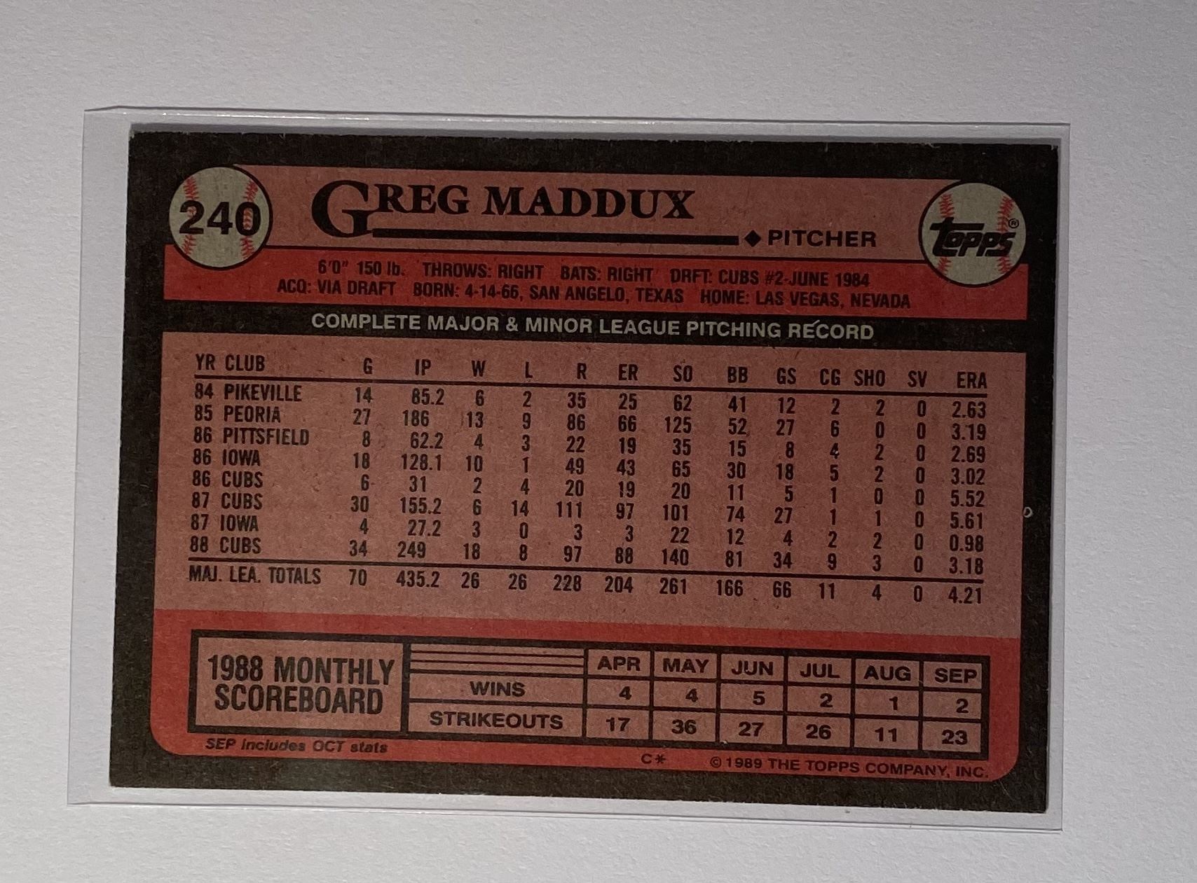 Greg Maddux (HOF) 1989 TOPPS, card #240