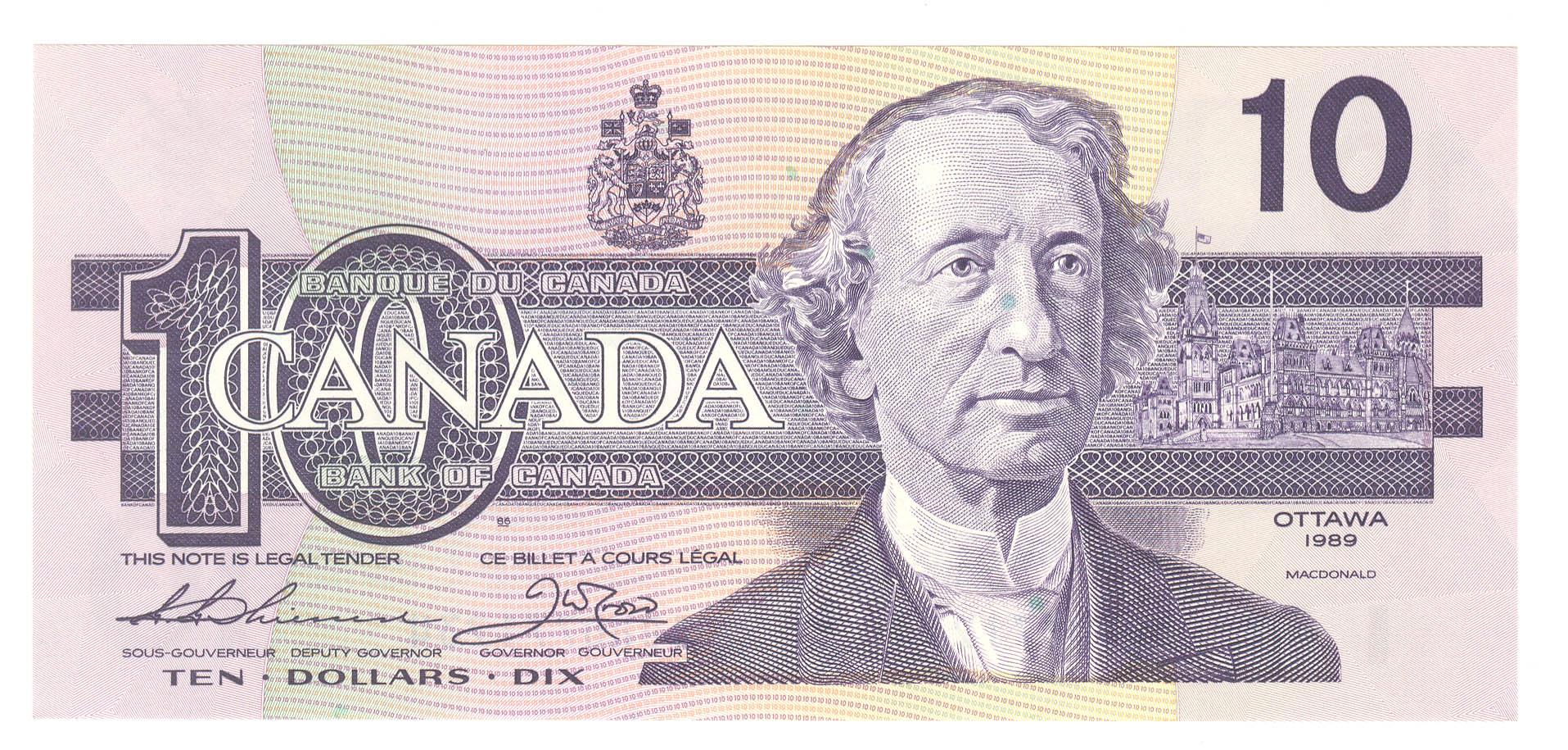 1989  Ten Dollars  Changeover, BC-57a, GEM UNC, Thiessen Crow, serial BDH0771234.