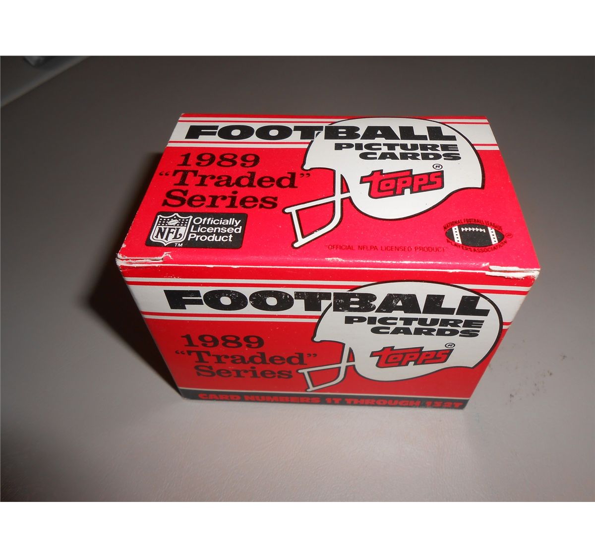 1989 Topps Traded Football 132-Card Factory Set. This Set contains the Rookie Cards of Troy Aikman, Barry Sanders, and Deion Sanders among others. Set is Near Mint.