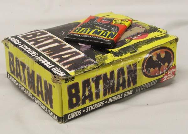 1989 Topps Vintage Batman Collector's Cards. Cards, stickers, bubble gum. Box measures approx. 2 1/3'' x 7 1/2'' x 5 1/2''. Some damage to outside of the box. Buyers Pay Actual Shipping and Handling Charges(see terms and conditions for more information)