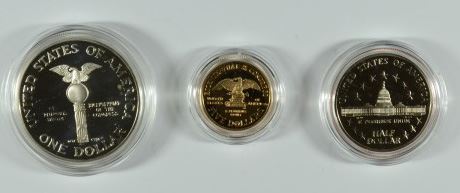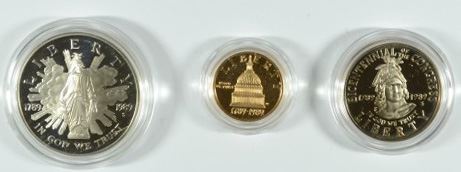 1989 U.S. CONGRESSIONAL COMMEMORATIVE PROOF $5.00 GOLD, SILVER $1.00 & CLAD 1/2