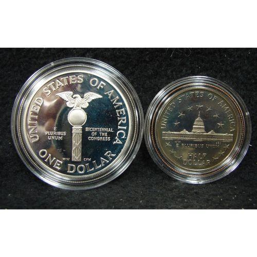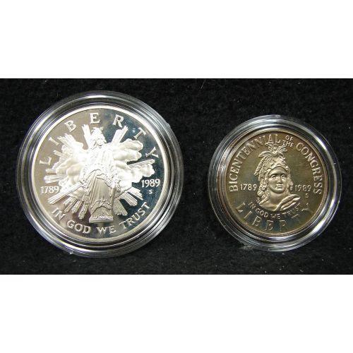 1989 U.S. CONGRESSIONAL PROCLAIMING THE TRIUMPH OF DEMOCRACY PROOF SET. Consists of half & silver dollar. In case & box.