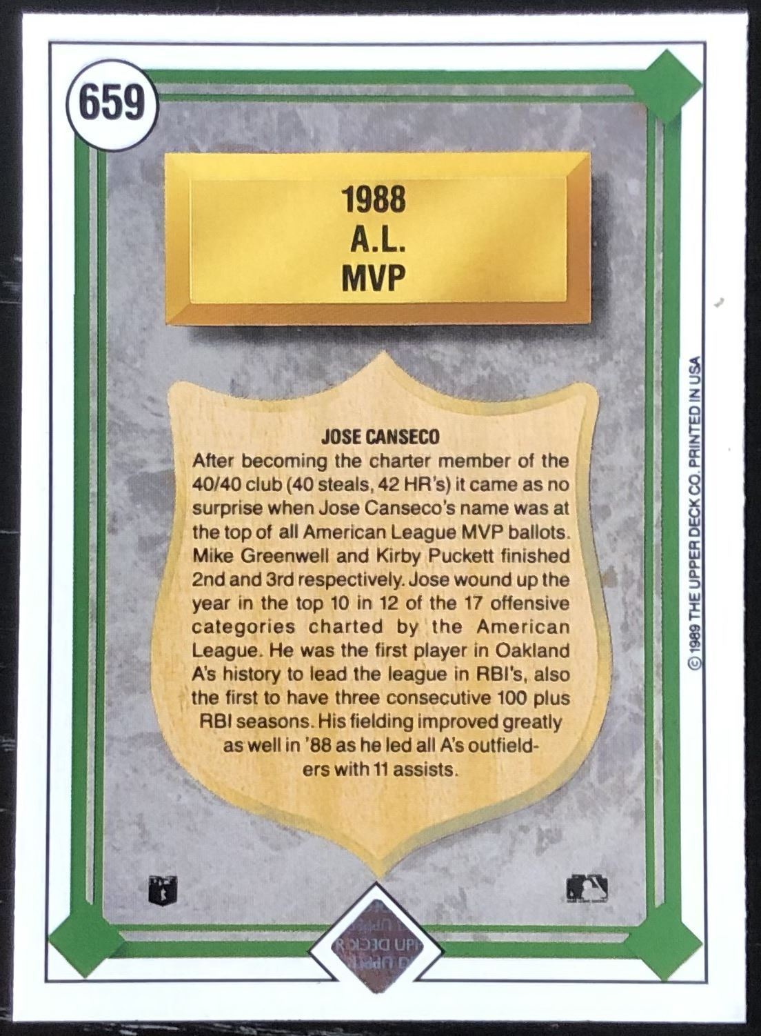Card #659 MLB, baseball, UD