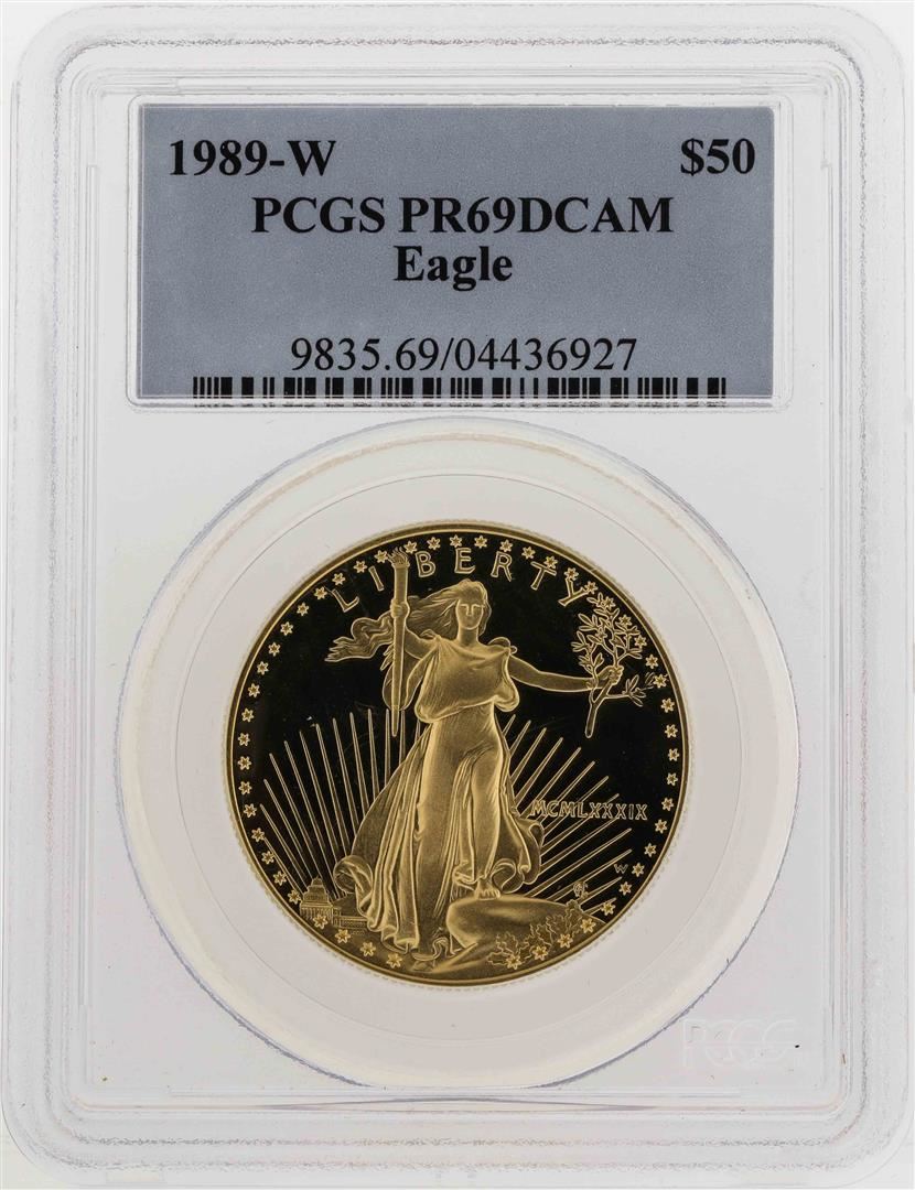 One 1989-W $50 American Gold Eagle Coin PCGS PR69DCAM. PCGS Graded.