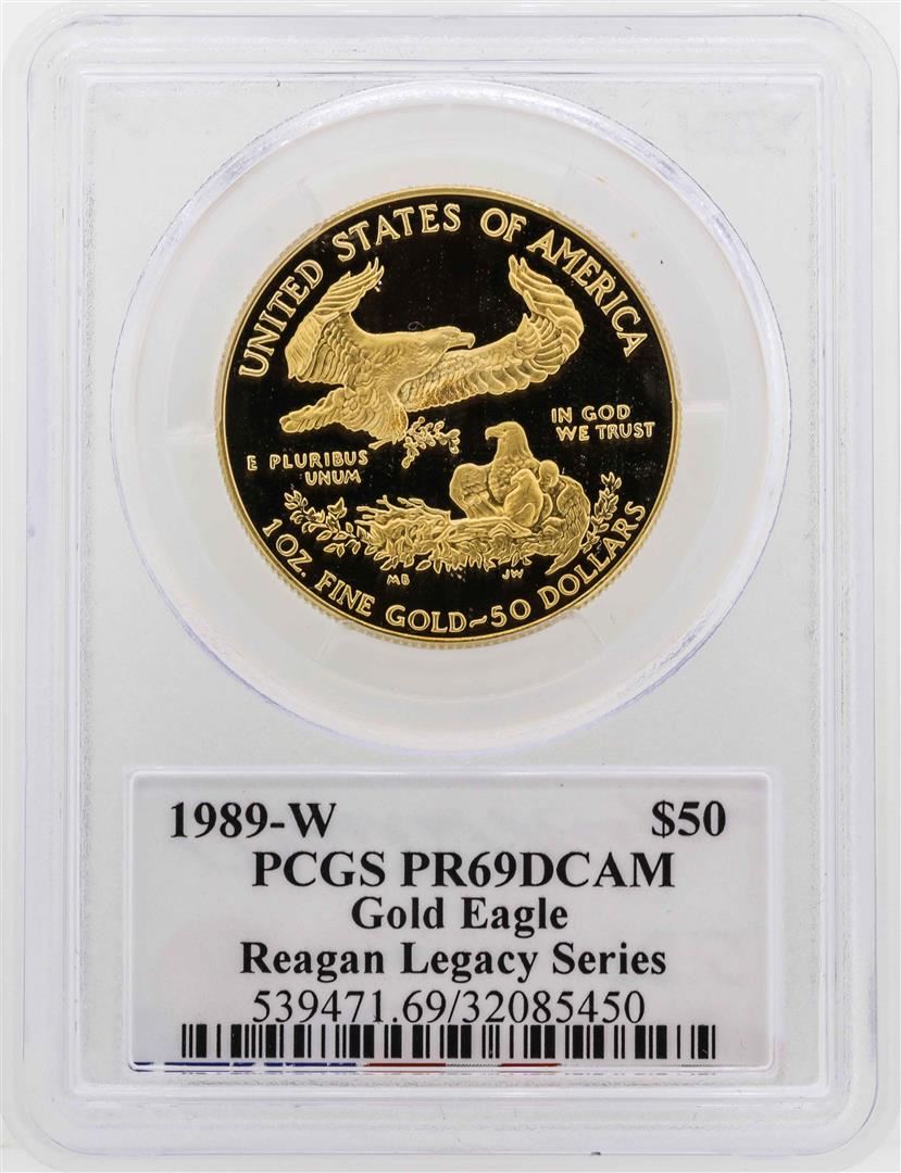 One 1989-W $50 American Gold Eagle Proof Coin PCGS PR69DCAM. PCGS Graded.