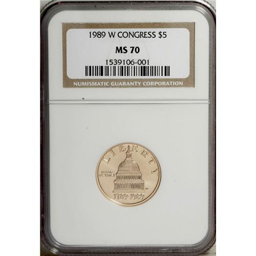 1989-W G$5 Congress Gold Five Dollar MS70 NGC. NGC