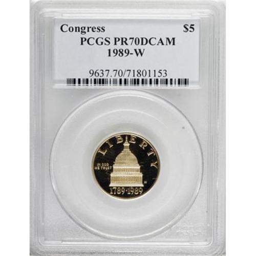 1989-W G$5 Congress Gold Five Dollar PR70 Deep Cameo
