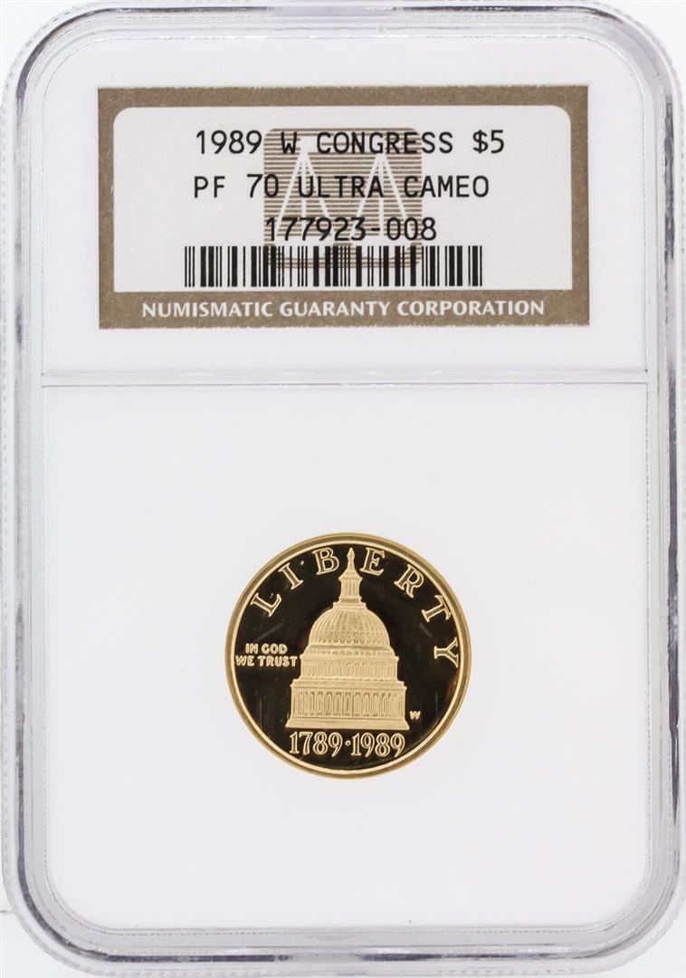 One 1989-W NGC MS70 Ultra Cameo $5 Congress Gold Coin. NGC Certified.
