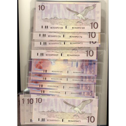 1989 and 2000 $10. Lot of 37 pairs of 1989 and 2000 $10 with matching serial numbers.