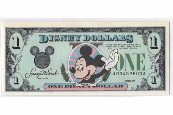 One 1989A $1 Mickey Disney Dollar. Mint condition.