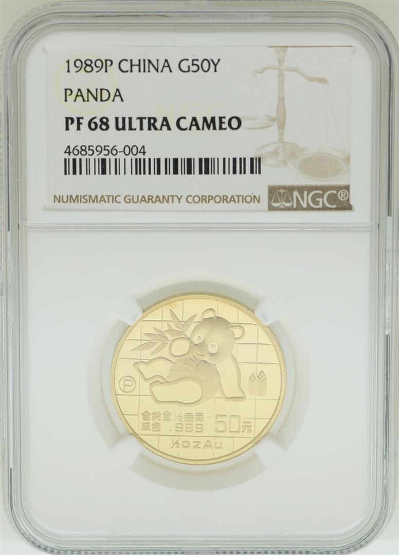 One 1989P China 50 Yuan Panda Gold Coin NGC PF68 Ultra Cameo. NGC Certified.