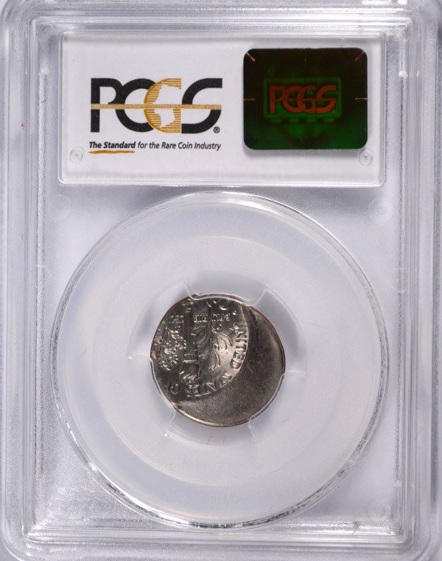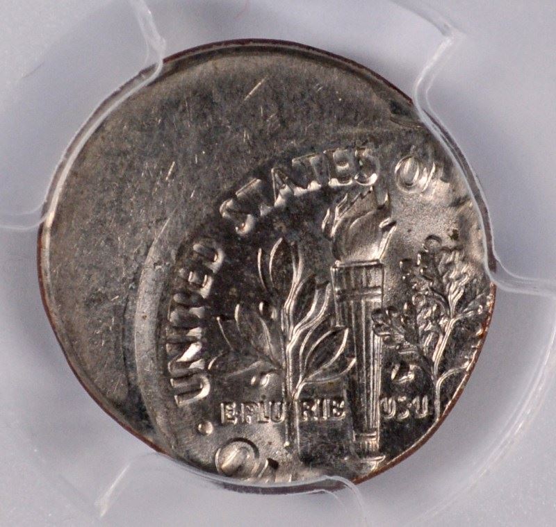 198X-D ROOSEVELT DIME, MINT ERROR ( STRUCK 35% OFF CENTER, PCGS MS-64 RARE!!!