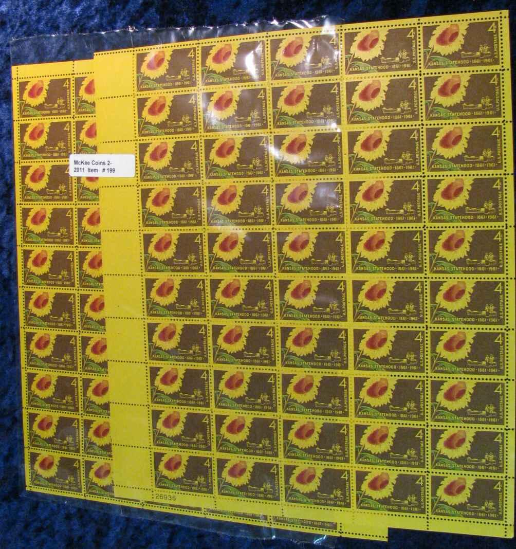 199. (2) Original Mint Sheets of 1861-1961 Kansas Statehood 4c U.S. Postage Stamps. (4.00 face value).