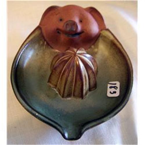 <!-- BEGIN: ICOLLECTOR - EBAY LOT HTML CODE --><style type='text/css'> #icoll_images_thumbnails, #icoll_images_mainimage, #icoll_otherlots { display: none; } div { font-family: arial, verdana, helvetica; } img { border: none; } .icoll_heading_title { background-color: #EFEFFF; color: #000; font-family: arial, verdana, helvetica; font-size: 12pt; font-style: normal; font-weight: bold; } </style><style type='text/css'>@import url(http://www.icollector.com/css/ebay/ebaylot_20070703.css);</style><script language='javascript' type='text/javascript'>function icollfunc_getelement(element_id) { var tmpelement = null; if(document.getElementById) tmpelement = document.getElementById(element_id); if(tmpelement == null) tmpelement = document[element_id]; return tmpelement; }var icollvar_mainpic = null; function icollfunc_initimages() { icollfunc_getelement('mainPicture').style.display = 'none'; icollvar_mainpic = icollfunc_getelement('icoll_images_mainimage'); var body_onload = document.body.attributes['onload']; document.body.setAttribute('onload', (body_onload ? body_onload.nodeValue : '') + 'icollfunc_fixoperaimgbug();'); }function icollfunc_changeimage(imgurl) { if(icollvar_mainpic != null) icollvar_mainpic.src = imgurl; }function icollfunc_fixoperaimgbug() { if(window.opera) { var imgobjs = icollfunc_getelement('icoll_images_thumbnails').getElementsByTagName('img'); for(var i=0; i<imgobjs.length; i++) { var w = imgobjs[i].clientWidth; if(w > 0) imgobjs[i].style.width = w + 'px'; } } }</script><script language='javascript' type='text/javascript'> var useragent = escape(navigator.userAgent); var appname = escape(navigator.appName); var dateobj = new Date(); var datetime = escape(dateobj.getFullYear()+'-'+(dateobj.getMonth()+1)+'-'+dateobj.getDate()+' '+dateobj.getHours()+':'+dateobj.getMinutes()); var referrer = ''; if(document.referrer && document.referrer != null) referrer = escape(document.referrer); new Image().src = 'http://www.icollector.com/stats/ebaylot.ashx?id=7619883&ua='+useragent+'&an='+appname+'&dt='+datetime+'&tz='+dateobj.getTimezoneOffset()+'&re='+referrer;</script><div id='icoll_images'><div id='icoll_images_prev'><a href='http://cgi.liveauctions.ebay.com/ws/eBayISAPI.dll?ViewItem&item=250201153974'><img src='http://photos.icollector.com/photos/harrisonauctions/5054/5054_0198_1_md.jpg' alt='' /><img src='http://icollector.com/graphics/ebay_leftarrow.gif' alt='' class='arrow' /></a><div id='icoll_images_prev_info'>Prev Lot</div></div><div id='icoll_images_next'><a href='http://cgi.liveauctions.ebay.com/ws/eBayISAPI.dll?ViewItem&item=250201153990'><img src='http://photos.icollector.com/photos/harrisonauctions/5054/5054_0200_1_md.jpg' alt='' /><img src='http://icollector.com/graphics/ebay_rightarrow.gif' alt='' class='arrow' /></a><div id='icoll_images_next_info'>Next Lot</div></div><div id='icoll_images_thumbnails'><a href='http://photos.icollector.com/photos/harrisonauctions/5054/5054_0199_1_lg.jpg' target='_blank' onmouseover="icollfunc_changeimage('http://photos.icollector.com/photos/harrisonauctions/5054/5054_0199_1_md.jpg');"><img src='http://photos.icollector.com/photos/harrisonauctions/5054/5054_0199_1_th.jpg' alt='' /></a><div id='icoll_images_thumbnails_info'>Hover thumbnail to view large image below. Click thumbnail to view full image in new window.</div></div><div id='icoll_images_mainimage_container'><img id='icoll_images_mainimage' alt='' src='http://photos.icollector.com/photos/harrisonauctions/5054/5054_0199_1_md.jpg'></div></div><script language='javascript' type='text/javascript'>icollfunc_initimages();</script><div id='icoll_description'>Smiling pig pottery lemon juicer<BR></div><div id='icoll_notices'><div class='icoll_heading_left'></div><div class='icoll_heading'><div class='icoll_heading_title'>Notices</div></div><div class='icoll_heading_right'></div><div id='icoll_notices_info'><a href="http://www.icollector.com/mediapopup.aspx?asid=13410">Link to Audio</a></div></div><div class='icoll_section'><div class='icoll_section_left'><div id='icoll_premium'><div class='icoll_heading_left'></div><div class='icoll_heading'><div class='icoll_heading_title'>Buyer's Premiums</div></div><div class='icoll_heading_right'></div><div id='icoll_premium_info'><ul><li><span id="icoll_premium_info_rate">17%</span> <span id="icoll_premium_info_range">( 0.00 ~ 9999999.00 )</span></li></ul></div></div></div><div class='icoll_section_right'><div id='icoll_taxes'><div class='icoll_heading_left'></div><div class='icoll_heading'><div class='icoll_heading_title'>Taxes</div></div><div class='icoll_heading_right'></div><div id='icoll_taxes_taxrates'><ul><li>FST: 6%</li></ul></div><div id='icoll_taxes_info'></div></div></div></div><div class='icoll_section'><div class='icoll_section_left'><div id='icoll_contactahouse'><div class='icoll_heading_left'></div><div class='icoll_heading'><div class='icoll_heading_title'>Auction House Info</div></div><div class='icoll_heading_right'></div><div id='icoll_contactahouse_info'><img src='http://www.icollector.com/graphics/logos/harrisonauctions_large.gif' alt=''>Harrison Auctions Inc