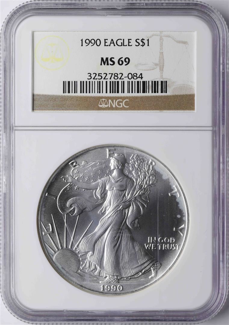 One 1990 $1 American Silver Eagle Coin NGC MS69. NGC Certified.