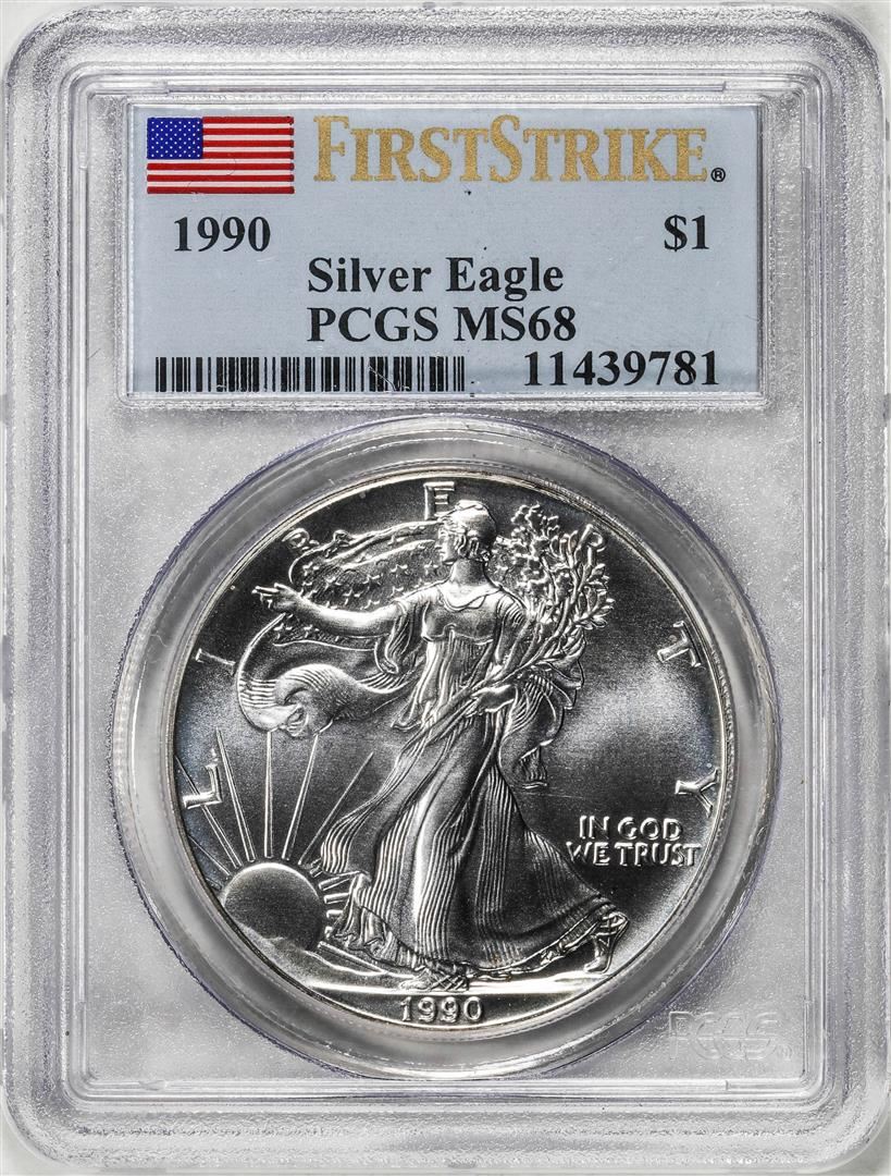 One 1990 $1 American Silver Eagle Coin PCGS MS68 First Strike. PCGS Graded.