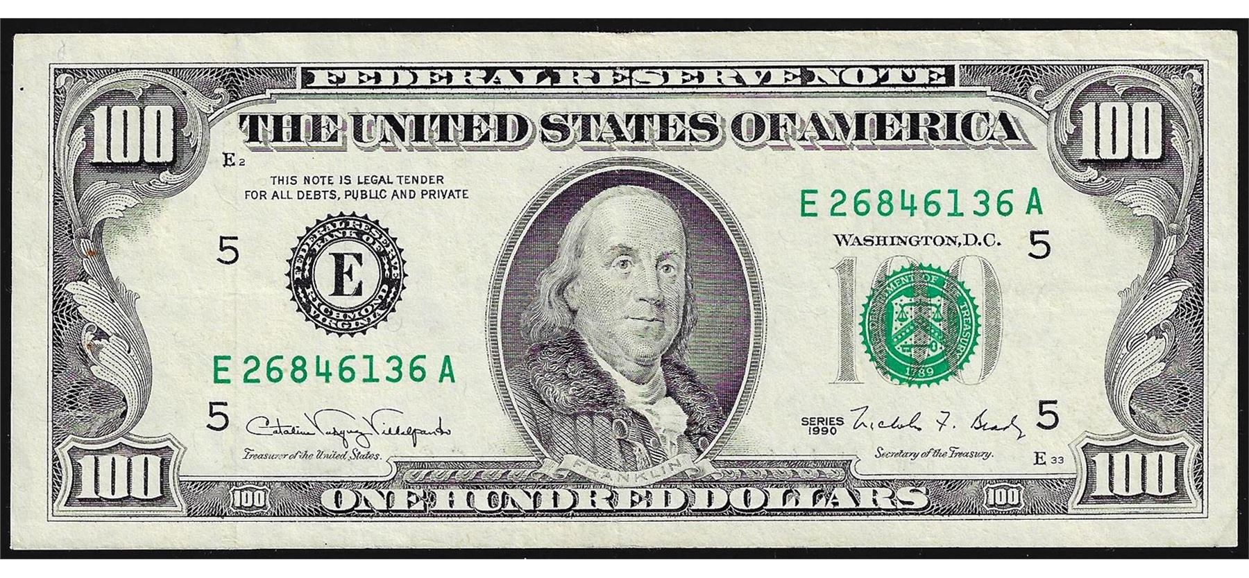 One 1990 $100 Federal Reserve Note.