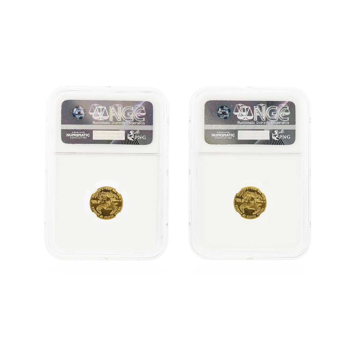 One 1990-1991 $5 American Gold Eagle Coin Set NGC Graded MS69. NGC Certified.