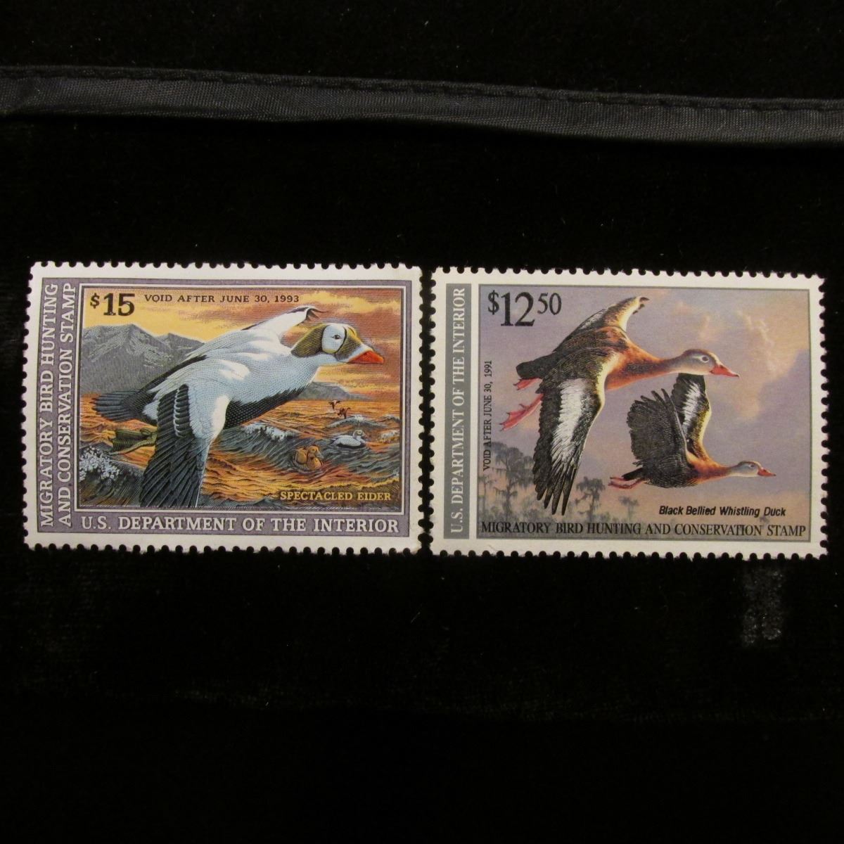 1990 & 1992 Mint, unsigned U.S. Department of the Interior Migratory Waterfowl Stamps, some gum.