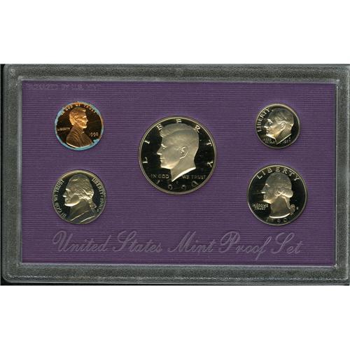 <B>1990<1C> No S Proof Set Uncertified.</B></I> A 1990 proof set with the No "S" cent. The cent grades PR60 Corroded Deep Cameo and the other coins grade PR69 Deep Cameo. All coins are complete with the original plastic case and outer envelope.
