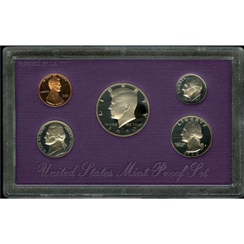 <B>1990 1C No S Proof Set Uncertified.</B></I> A uniformly high quality set of this modern rarity. The coins all easily grade PR67 and each shows significant cameo contrast. The cent is especially nice and shows none of the peripheral corrosion sometimes seen on these pieces. The original purple cardboard holder and Certificate of Authenticity are included.<BR><BR><b>Shipping:</b> Coins & Currency (<a target="_blank" href="http://www.heritageauctions.com/common/shipping.php">view shipping information</a>)