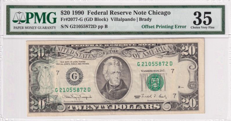One 1990 $20 ERROr Offset Printing FRN PMG 35.