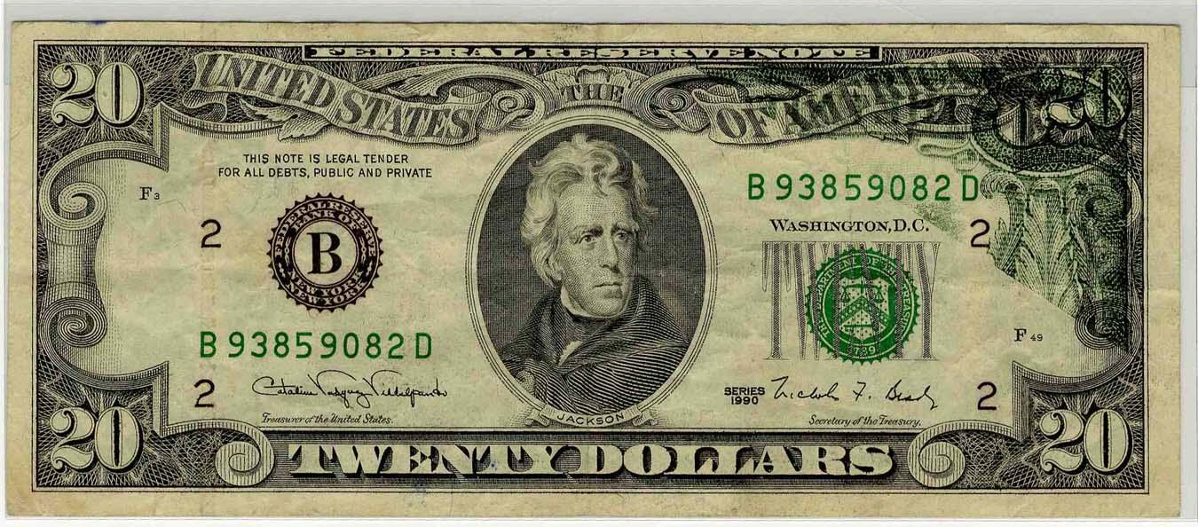 1990 $20 Federal Reserve Error Note -- Offset Printing