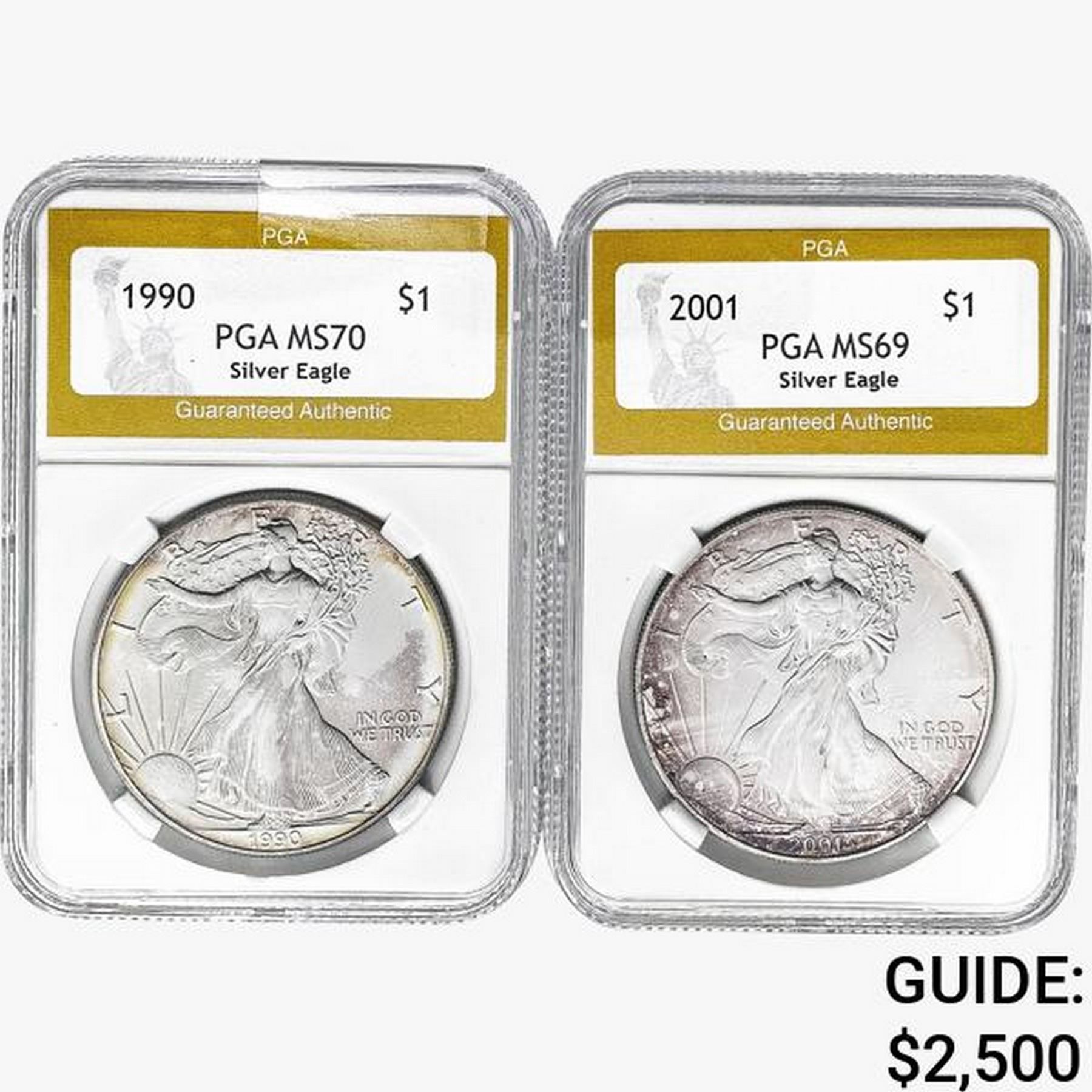 1990-2001 [2] $1 ASE 1 OZ PGA MS69-70