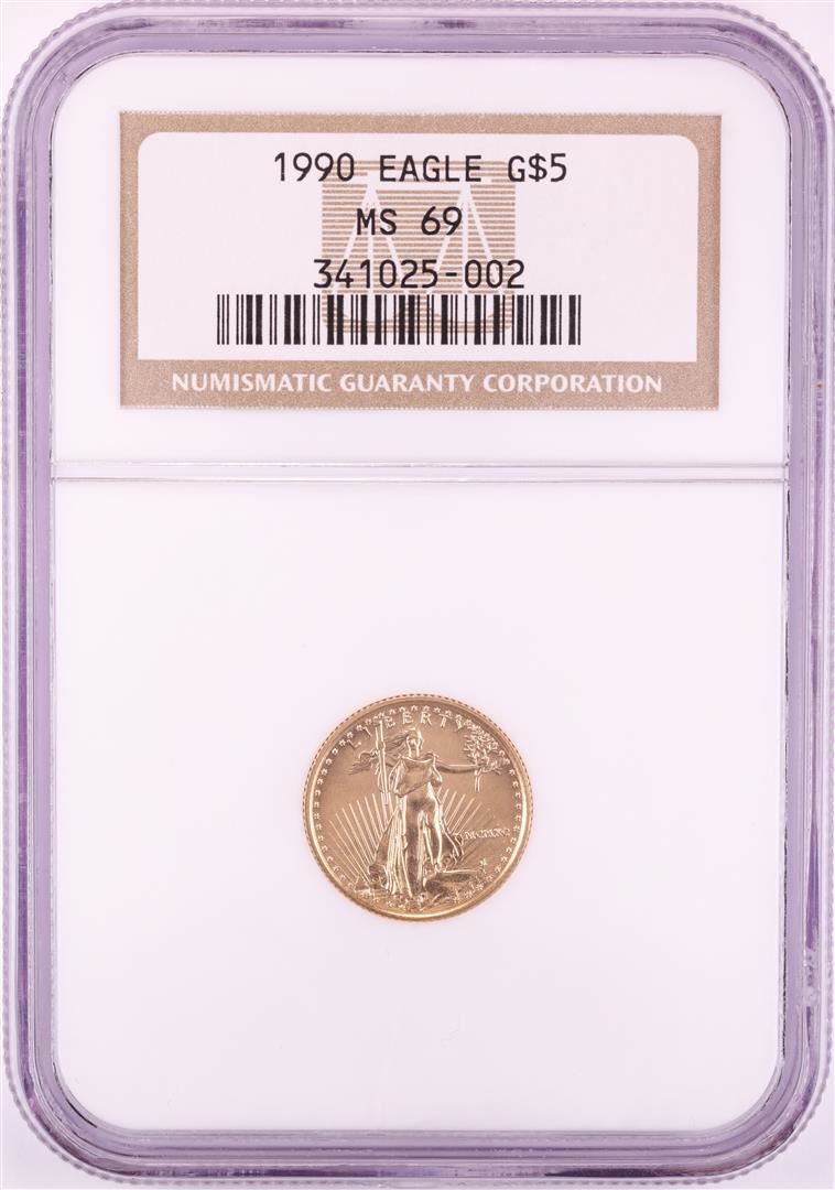 One 1990 $5 American Gold Eagle Coin NGC MS69. NGC Certified.