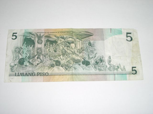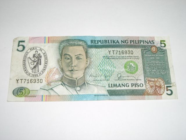 1990 5 LIMANG PISO *PHILIPPINES - REPUBLIKA NG PHILIPINAS*!! ***Coin, Currency & All Items Listed in this auction - Grades, Conditions and Values are not Safe Deposit Coins LLC Responsibilty. Grades, Condition and Values are determined by Consigner(s) & Buyers ONLY***