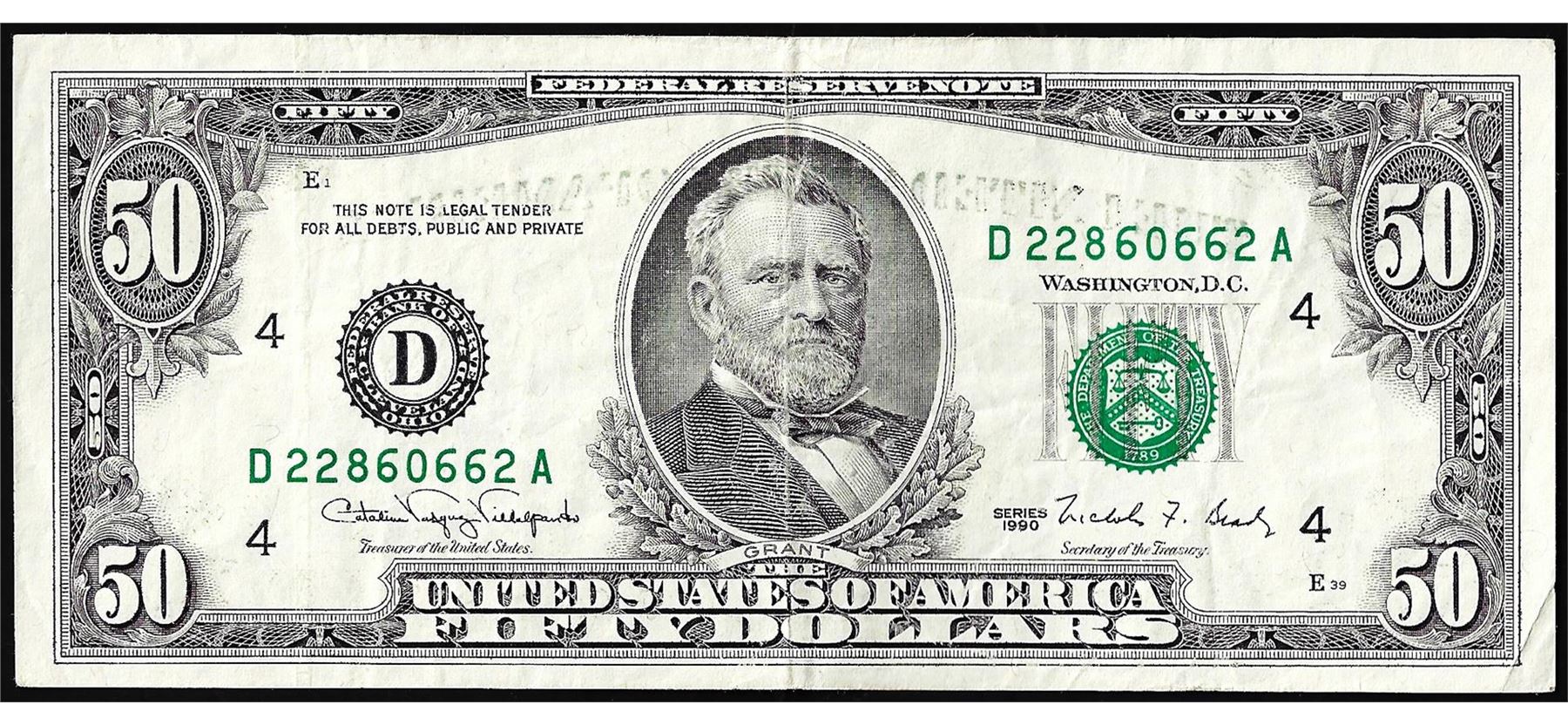 One 1990 $50 Federal Reserve Note Cleveland Minor Offset Error.