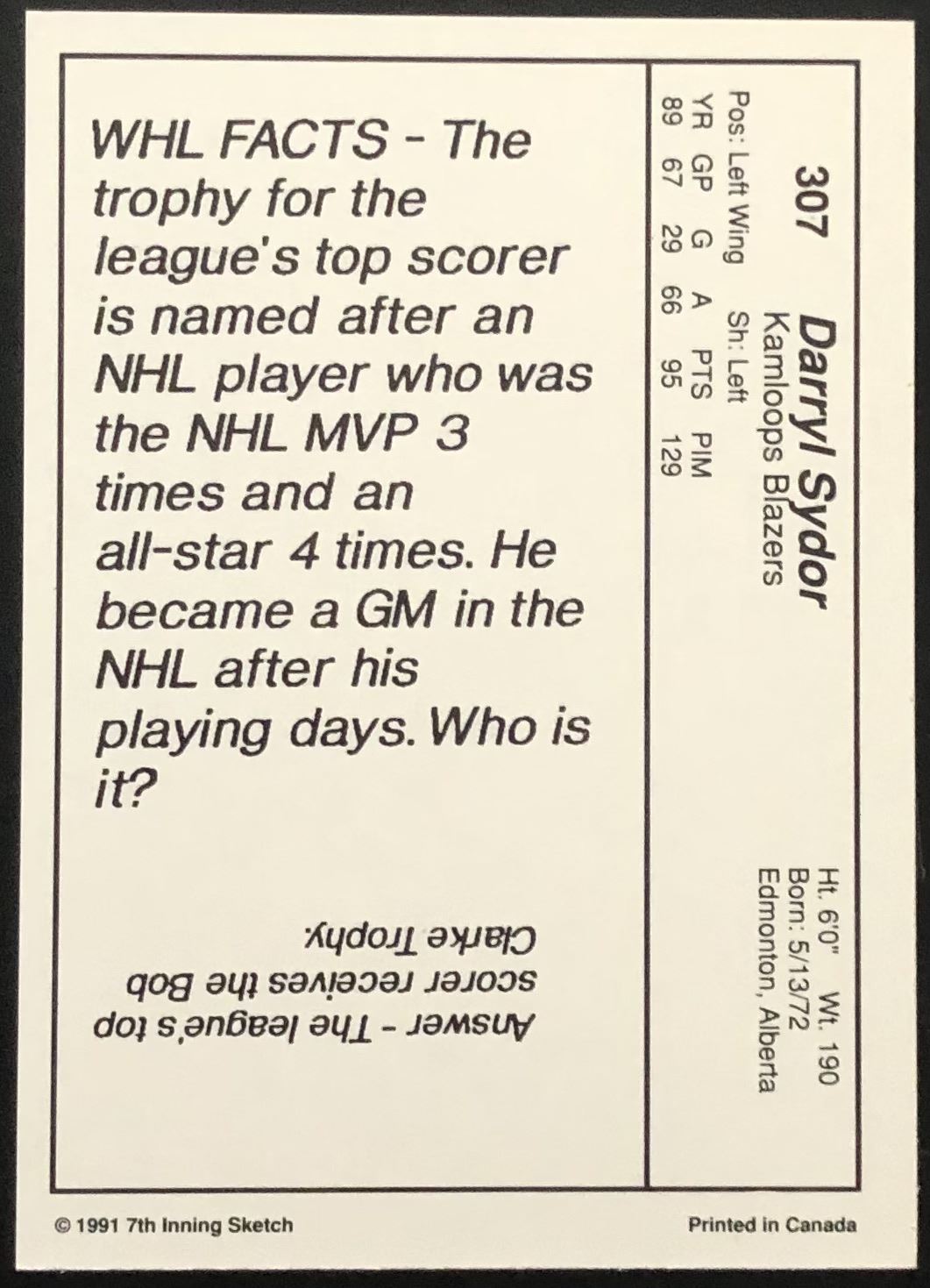 Card #307 CHL, WHL, hockey, rookie