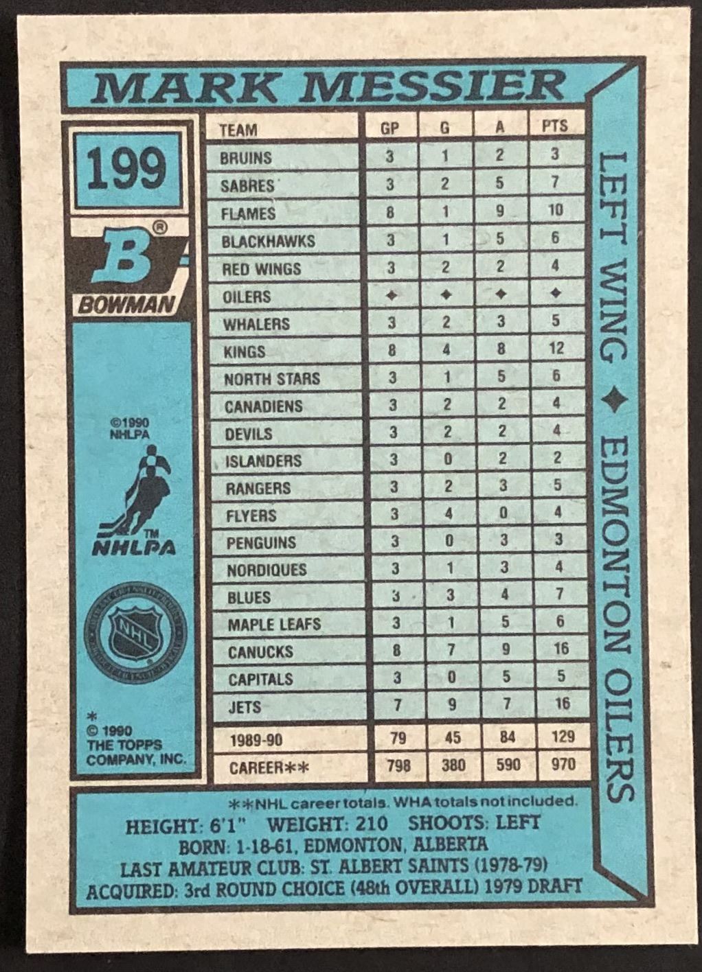 Card #199 NHL, hockey, hall of fame, OPC