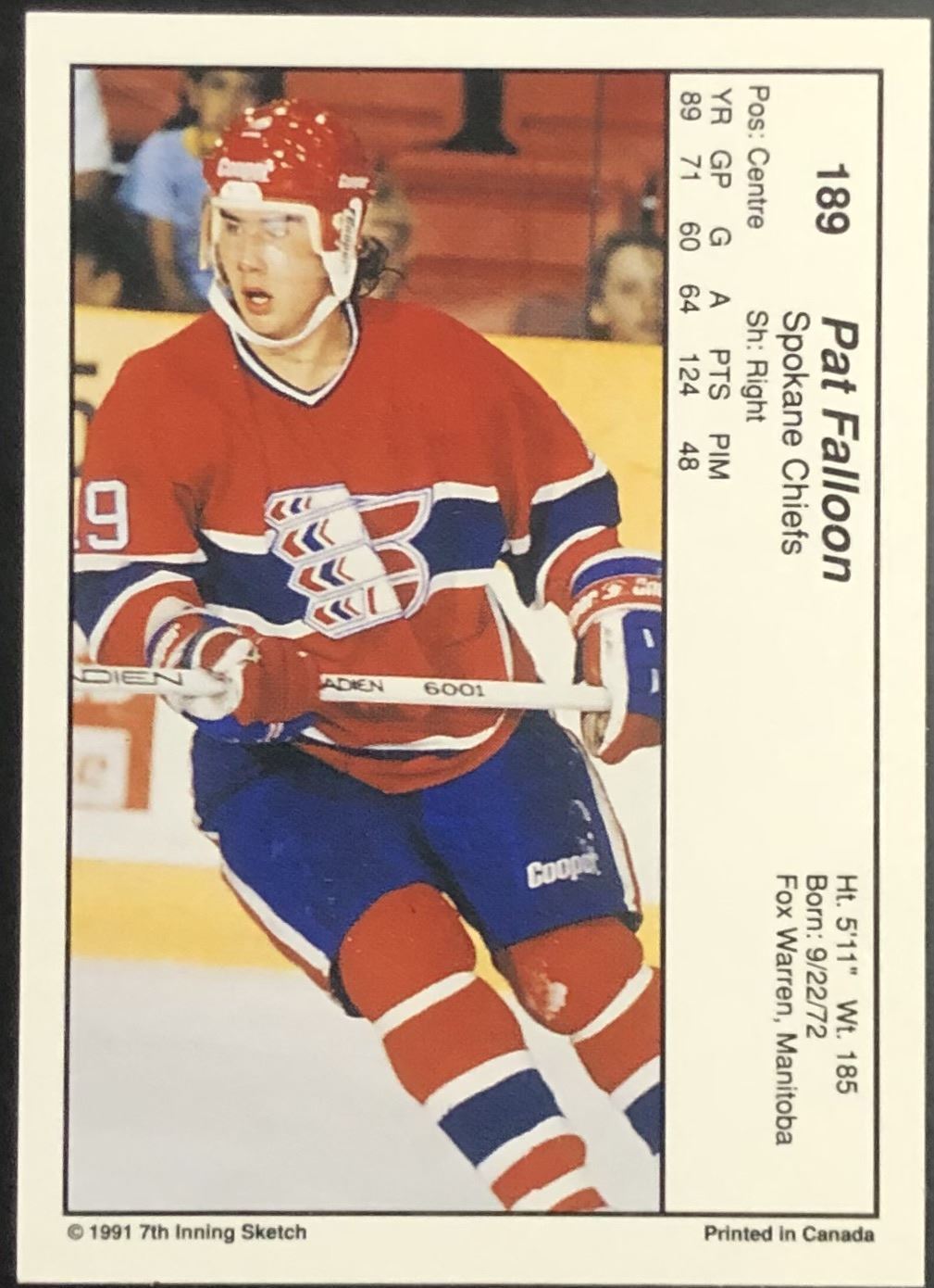 Card #189 7th Inning Sketch, CHL, WHL, hockey, rookie