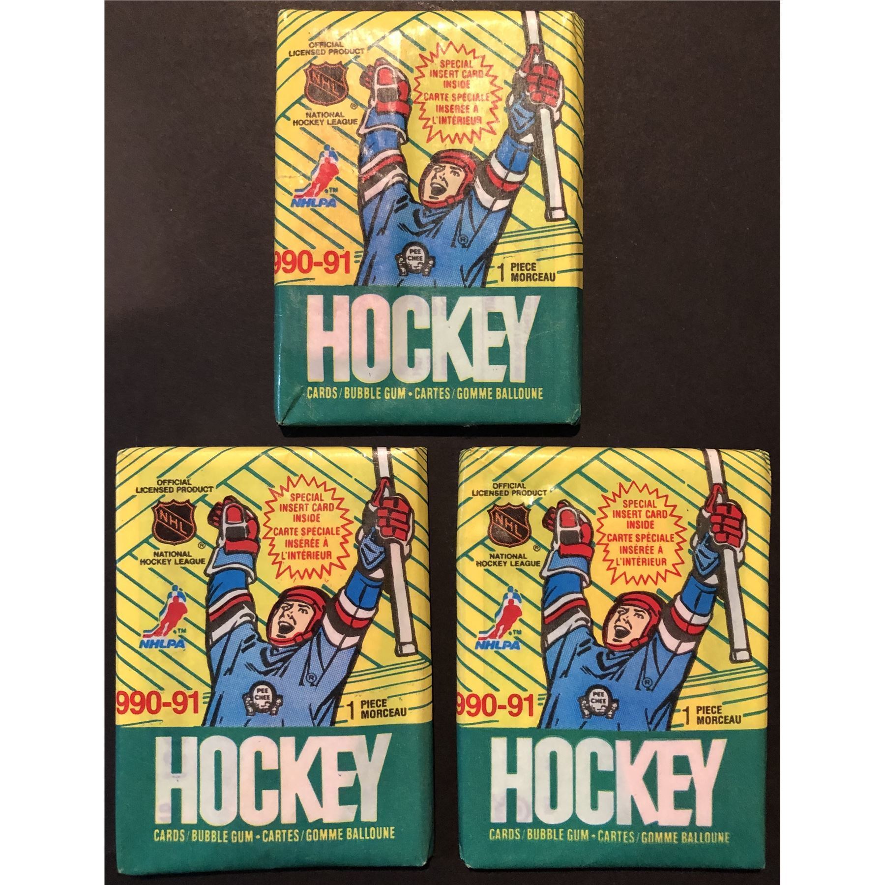 cards & bubble gum, 3 unopened packs NHL, hockey, OPC, paks, rookie, hall of fame