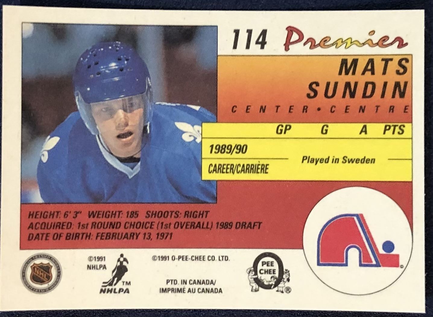 Card #114 NHL, hockey, OPC, rookie, hall of fame