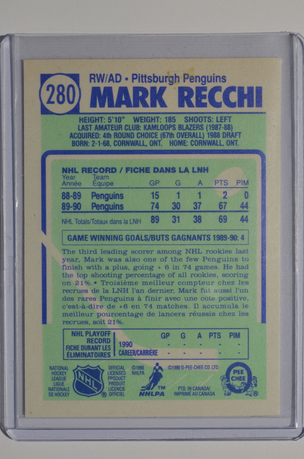 1990-91 O-Pee-Chee #280 Mark Recchi RC