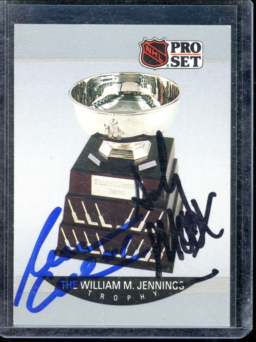 1990-91 Pro Set #382 Andy Moog/Lemelin Jennings Dual Autographed Card