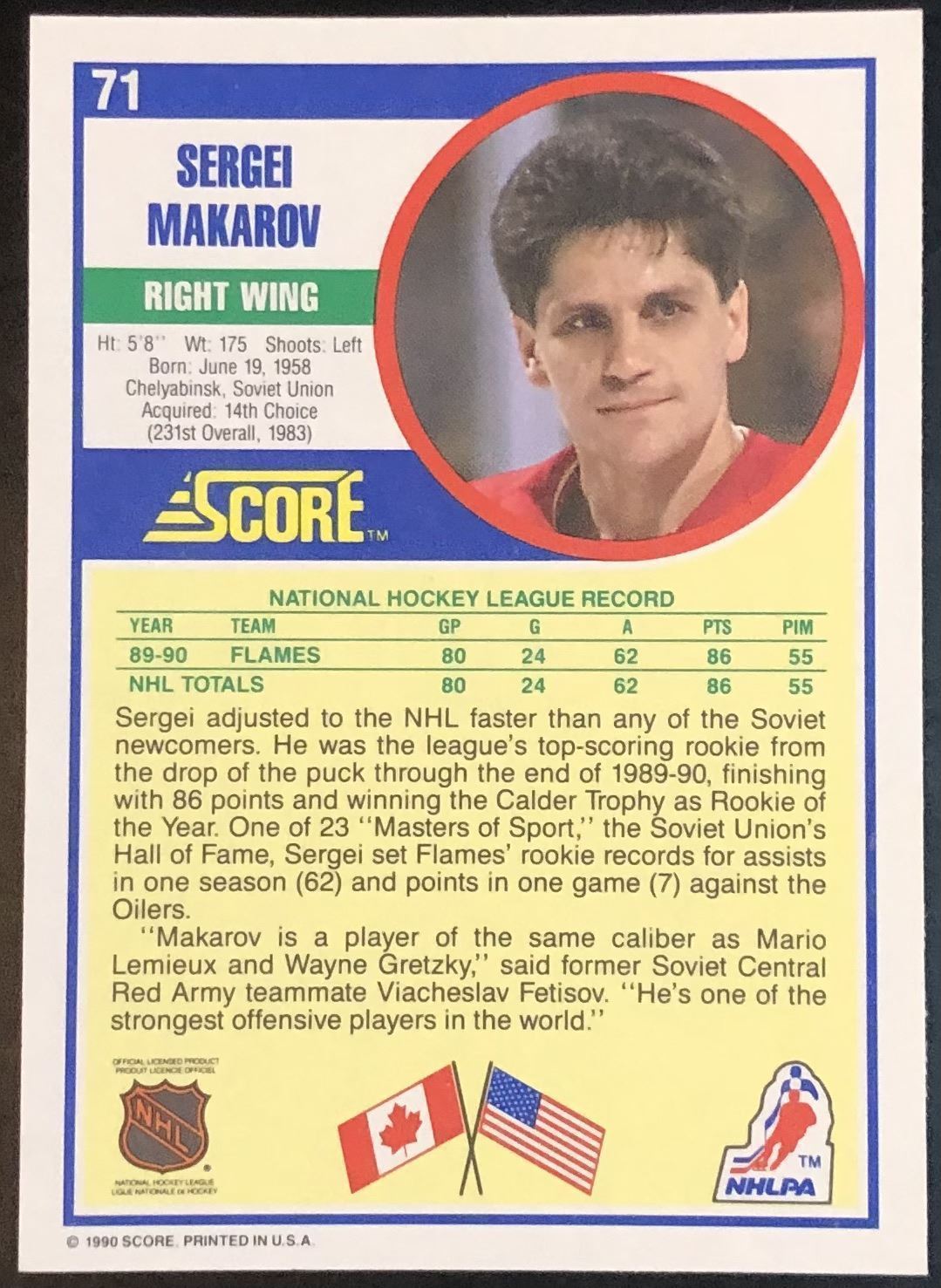 Card #71 NHL, hockey, hall of fame, rookie