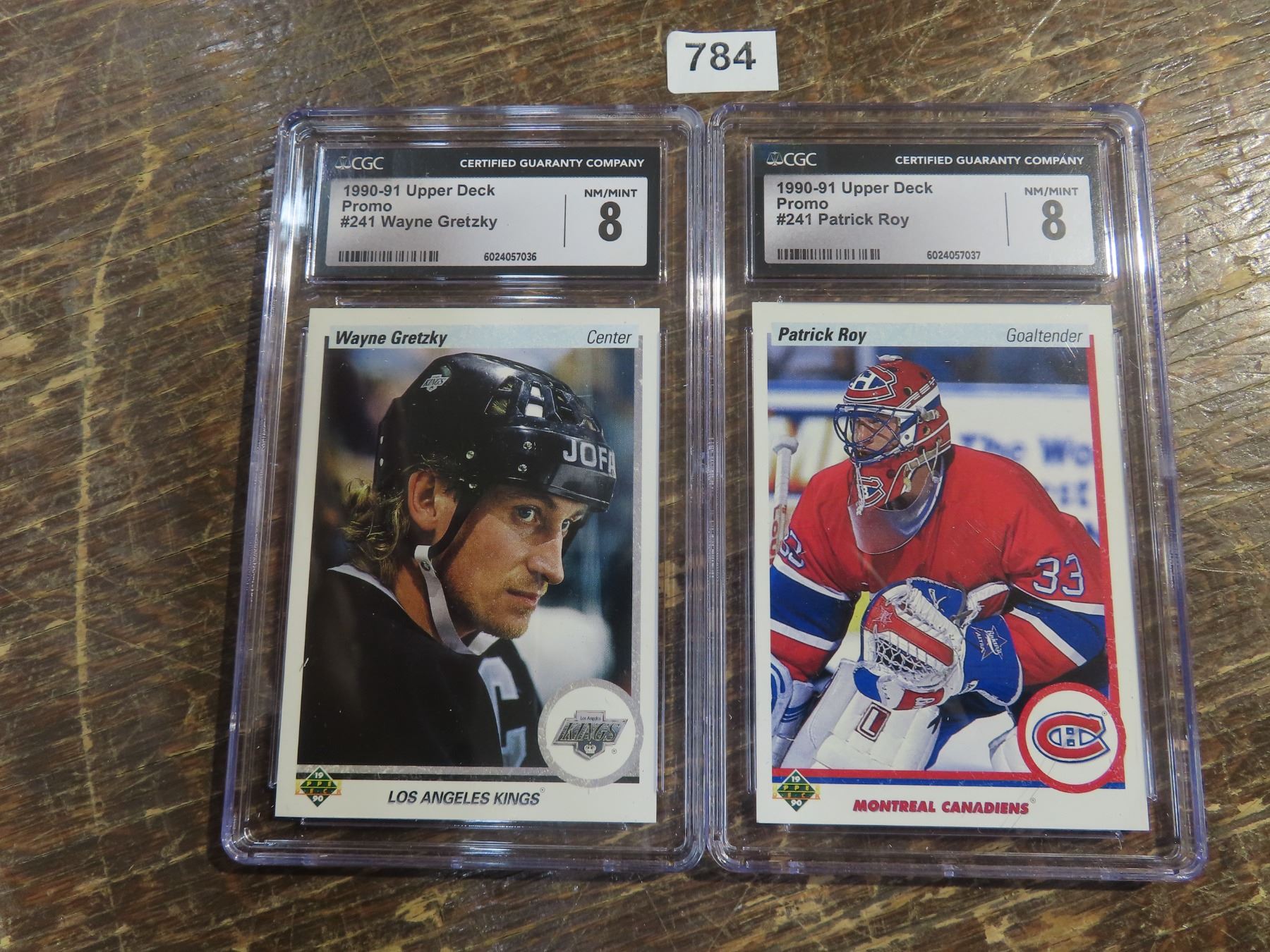 1990-91 UPPER DECK PROMOS #241 WAYNE GRETZKY CGC 8 #241 PATRICK ROY CGC 8