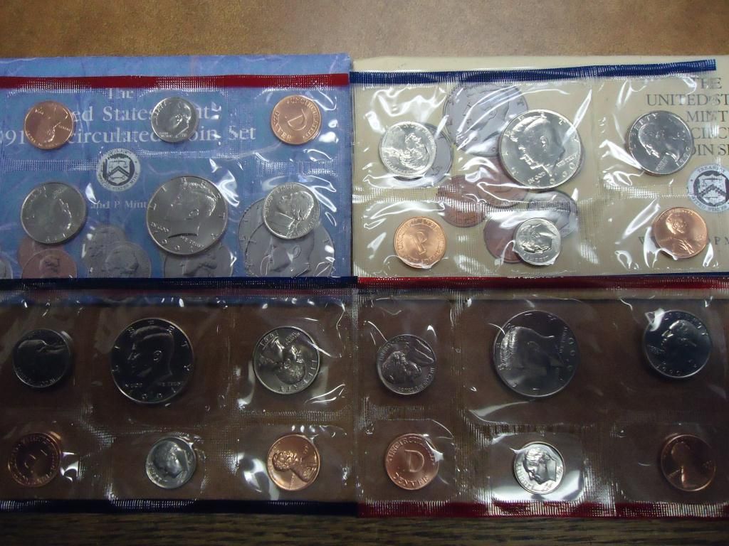 1990 & 91 US MINT SETS (UNC) P/D (WITH ENVELOPES)