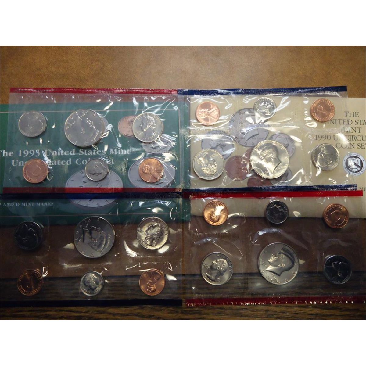 1990 & 93 US MINT SETS (UNC) P/D (WITH ENVELOPES)