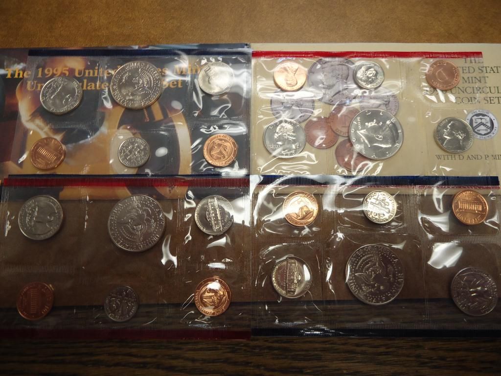 1990 & 95 US MINT SETS (UNC) P/D (WITH ENVELOPES)