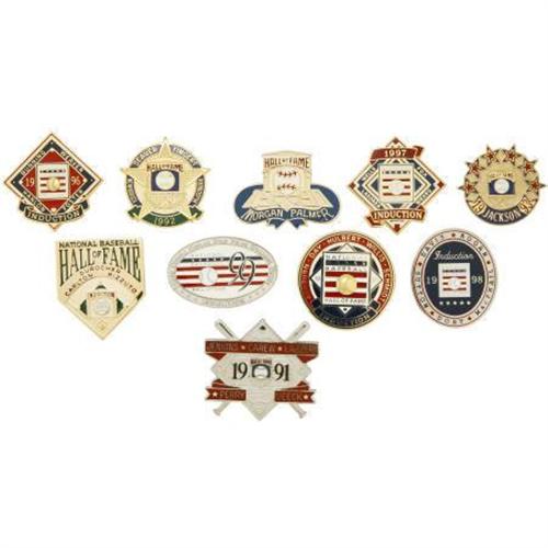 <B>1990-99 Baseball Hall of Fame Induction Pins Lot of 10.</B></I> From the top corporate sponsor of the Baseball Hall of Fame comes this Mint in Box collection of Official Induction Day pins that herald the enshrinement of such luminaries as Tom Seaver, Leo Durocher, Tony Lazzeri and Reggie Jackson. Every pin from the decade is present. This is a market on the rise, and smart investors are getting in on these rare pieces now.<BR><BR><b>Shipping:</b> Requires 3rd Party Shipping (<a target="_blank" href="http://www.heritageauctions.com/common/shipping.php">view shipping information</a>)