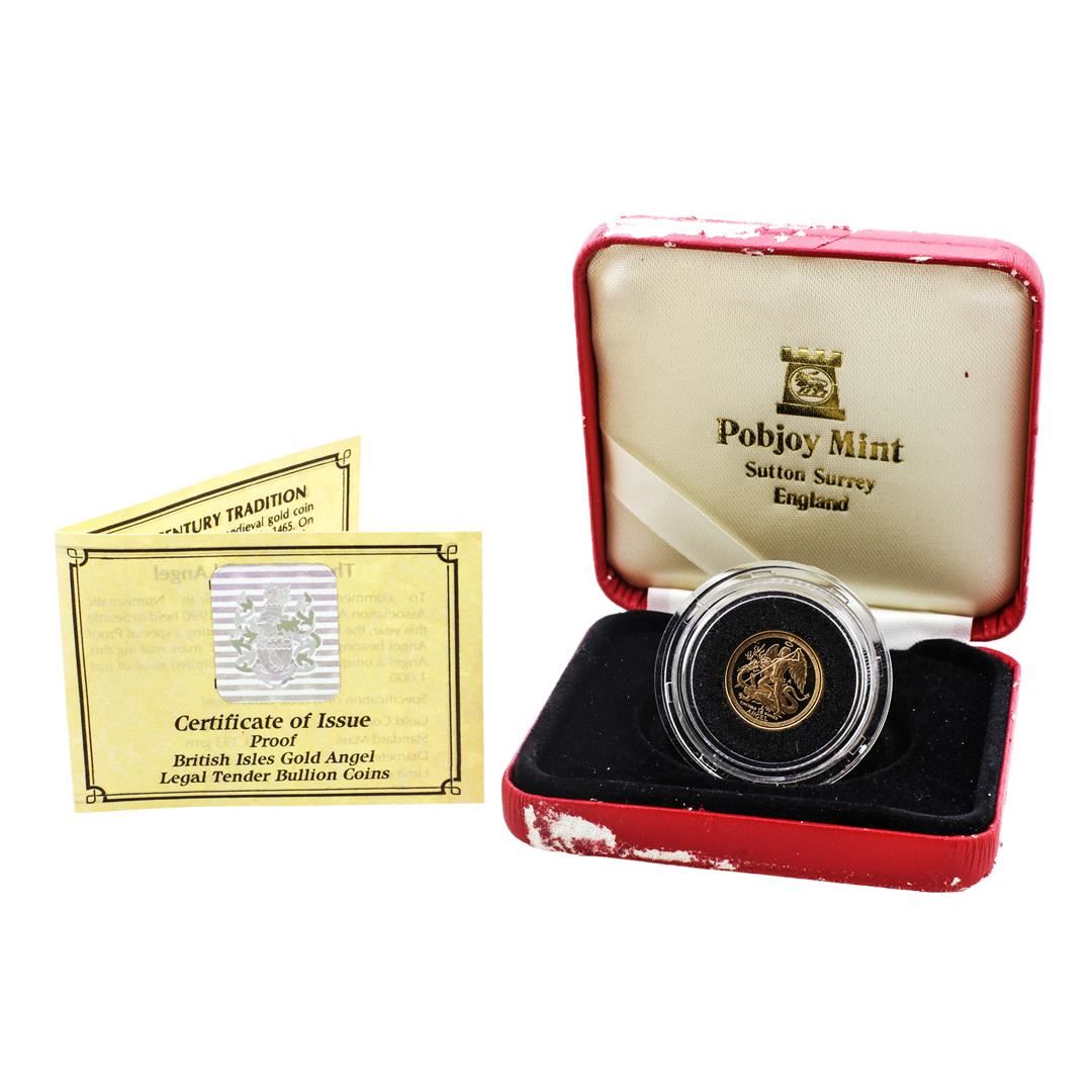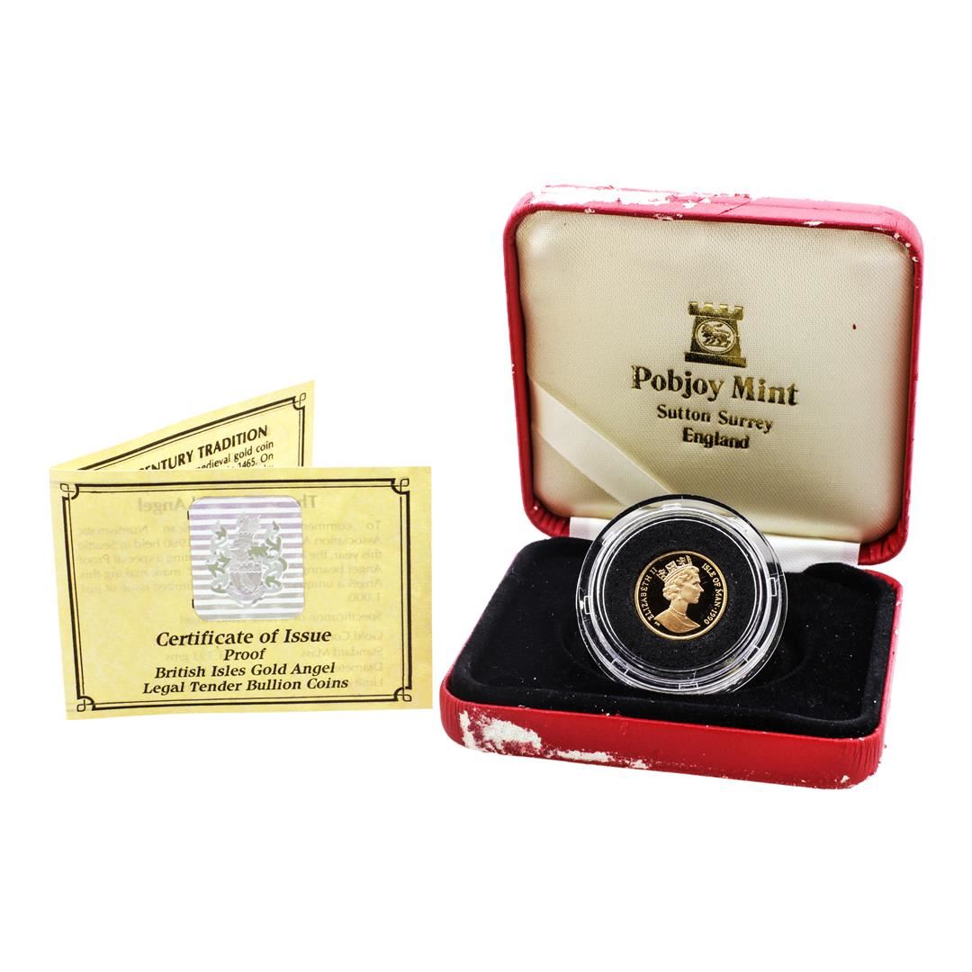 One 1990-A Proof Isle of Man 1/10 oz Gold Coin w/ Box & COA.