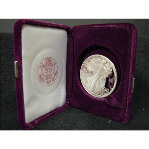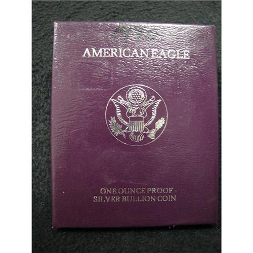 1990 AMERICAN EAGLE SILVER DOLLAR PROOF. Has original case and box. Missing circular coin case.
