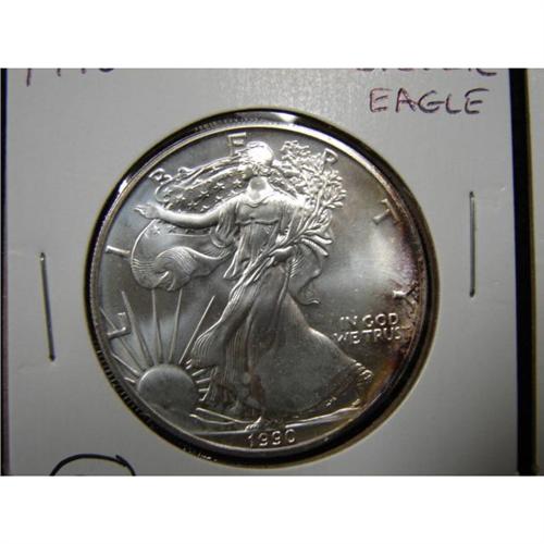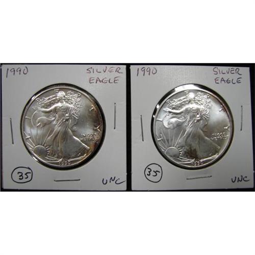PAIR OF 1990 AMERICAN EAGLE SILVER DOLLARS. Unc.