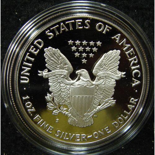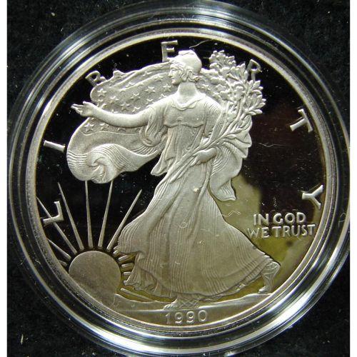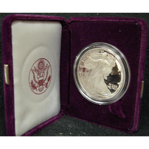 1990 AMERICAN EAGLE SILVER DOLLAR. Proof. Has case and box.
